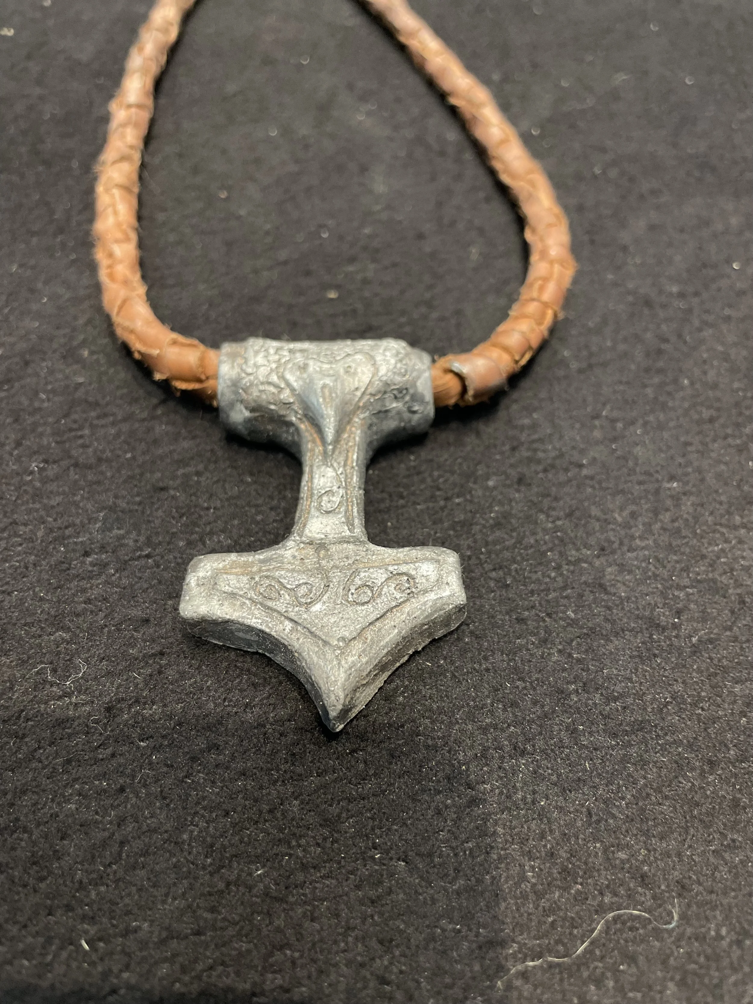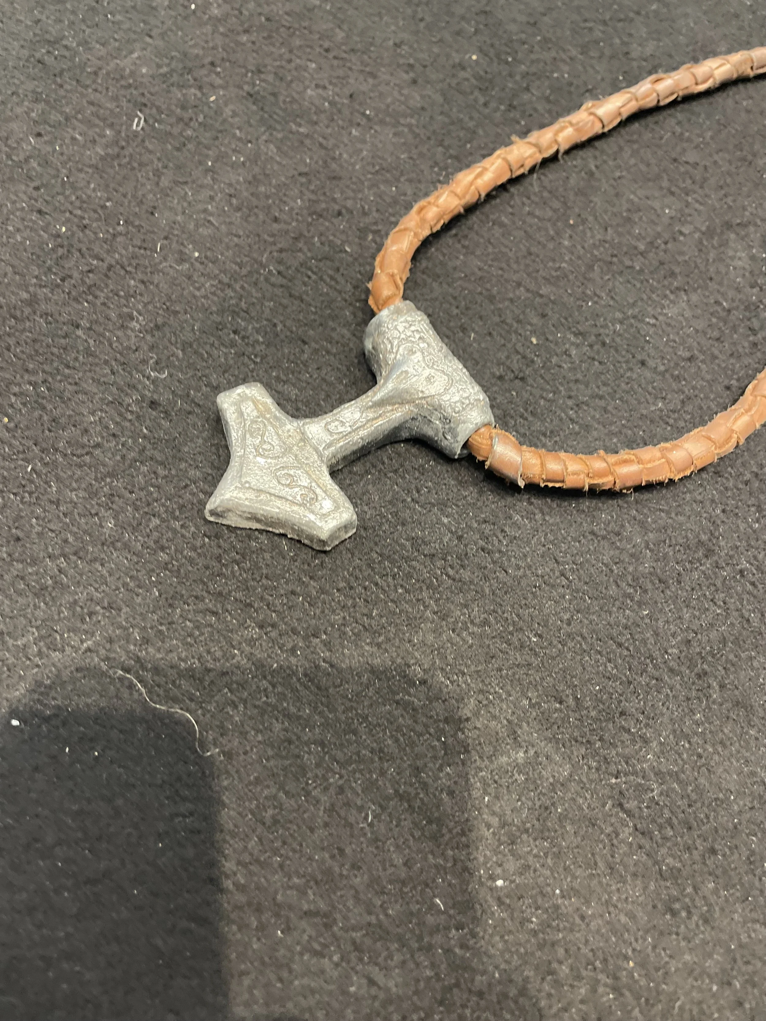 Leather cording, polyurethane, silver rub and buff