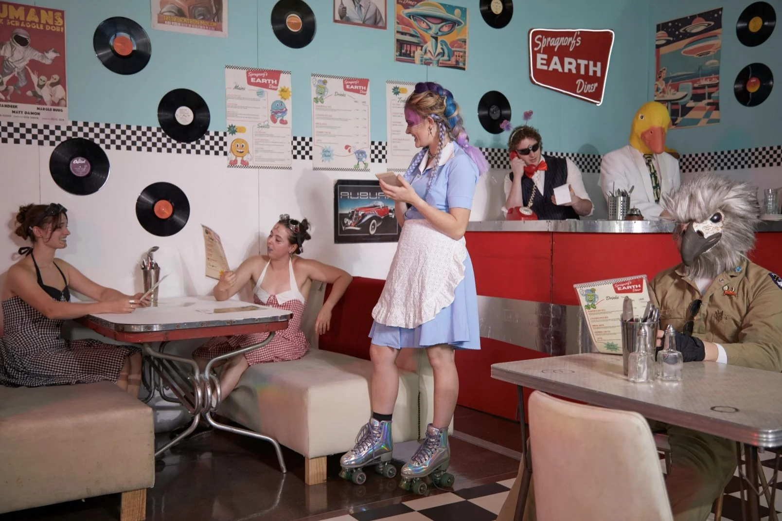 A group installatiOn to create a 50’s insp space diner and food to match the theme of the the diner. As lead set construction i built the large curved bar as well as the back wall. I also created a space coffee and an icecream sundae that doubles as a fountain.